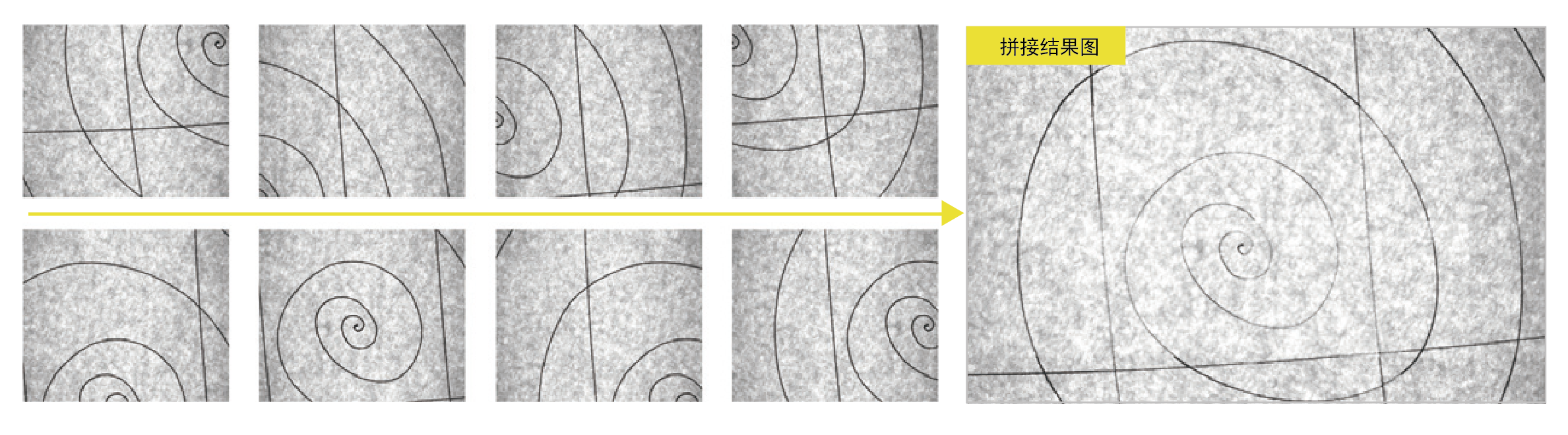 通过联合标定,将数张图像高精度地拼接成一幅图像,以高性价比的方式解决超大视野的高精度定位测量难题。